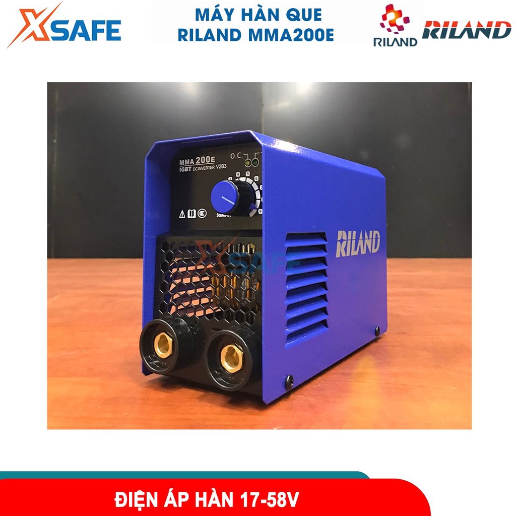 Giới thiệu Máy hàn điện tử Riland MMA200E máy hàn que công suất 4.4 KVA dòng hàn: 40-140A hàn que: Ø1,6-2,5mm [CHÍNH HÃNG][XSAFE]