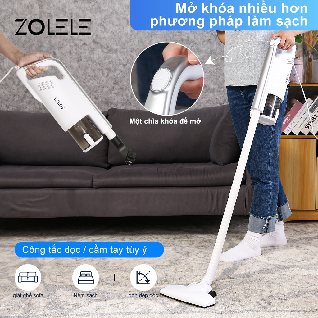 ● Máy hút bụi ZOLELE là máy hút bụi công suất lớn với nhiều chức năng, khả năng hút bão cao có thể hút sạch bụi sâu, vòi hút đi kèm chổi có thể xoay 90 độ không cụt.