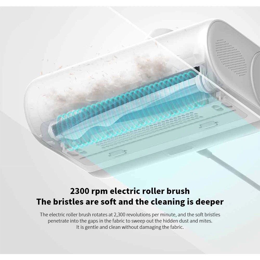 Máy hút bụi diệt khuẩn UV Xiaomi Mijia Mite Removal 12000Pa được trang bị động cơ độc lập kết hợp cùng con lăn quay tốc độ cao với tần số rung lên đến 10000 lần/ phút, giúp đập và loại bỏ hiệu quả các loại mạt bụi ẩn. Bên cạnh đó, đầu bàn chải điện mềm mại với khả năng quay đến 2300 vòng/ phút giúp len lỏi vào tận sâu bên trong cấu trúc vải, quét sạch tận gốc bụi bẩn và mạt ẩn. Vì sử dụng bàn chải lông mềm nên máy sẽ nhẹ nhàng len lỏi vào các khe hở của vải mà không làm hỏng bề mặt vải, do đó người dùng có thể an tâm về vấn đề này.