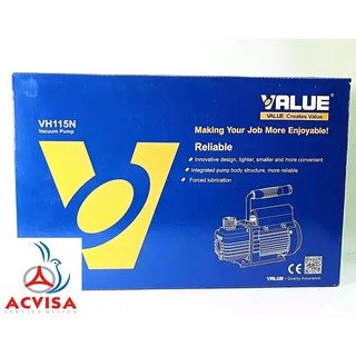 Máy Hút Chân Không VALUE Model VH115N (1.5 CFM) dây đồng 100% Thông tin sản phẩm : - Model: VH115N - Tại sao phải hút chân không cho máy điều hòa (hoặc các hệ thống lạnh khác) trước khi đưa vào sử dụng ? Việc hút chân không rất quan trọng trong việc lắp đặt điều hòa, nhất là đối với các máy sử dụng môi chất gas R410A hoặc R32. Việc hút chân không làm sạch đường ống sẽ giúp hệ thống không có tạp chất hoặc cặn bẩn (trong quá trình hàn ống) tránh các sự cố như tắc gas lạnh, tắc ẩm bảo vệ máy nén điều hòa hoạt động tốt nhất. Độ lạnh của máy điều hòa không khí sẽ tốt nhất khi bạn hút chân không bởi khi đó gas lạnh tuần hoàn trong hệ thống sẽ không bị biến đổi hoặc lẫn tạp chất.