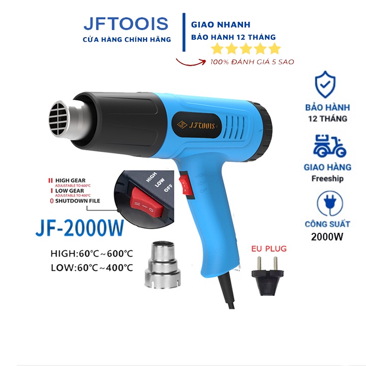 Dụng cụ và thiết bị tiện ích > Dụng cụ điện và thiết bị lớn > Máy thổi > Máy khò hơi nóng JFTOOIS 2000W Chính hãng, khò nhiệt, bọc màng co giỏ quà tết, dán decal [BH 12 Tháng]