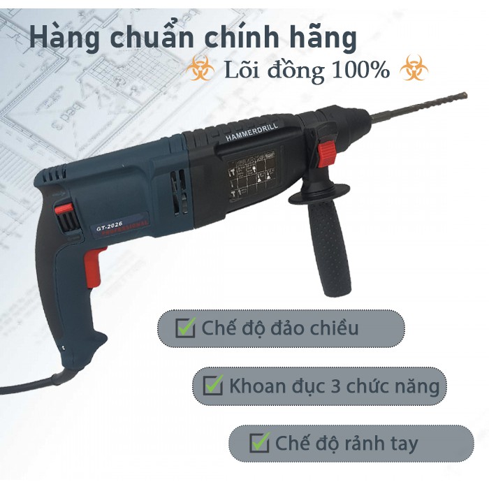 Máy khoan đục bê tông 3 chức năng chính hãng GGG 2026 - Công suất 960W, đầu 17 ly lõi đồng
