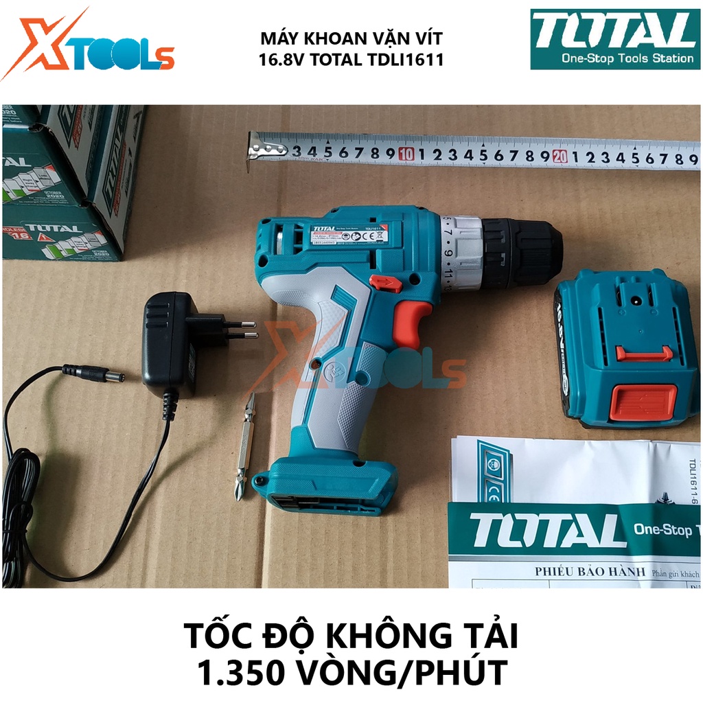 Giới thiệu Máy khoan dùng pin TOTAL TDLI1611 máy siết ốc vít cầm tay đa năng pin Li-ion 16.8V /1.5 Ah có hai mũi Cr-V 65mm [XTOOLs]
