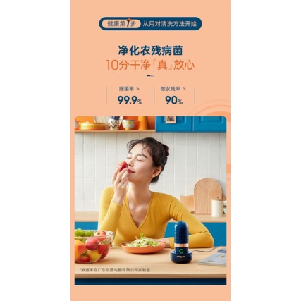 donlonNAM - SẢN PHẨM CHÍNH HÃNG Máy khử độc hoa quả thực phẩm, máy làm sạch rau củ, loại bỏ vi khuẩn và thuốc trừ sâu. *Máy làm sạch rau củ , thực phẩm sử dụng công nghệ lọc ion năng lượng cao. *Với chiếc máy này, nước sẽ bị phân hủy thành các ion hydroxit và ion hydro dưới tác động của máy tạo ion.Thông qua đó, thiết bị có thể tiêu diệt các vi khuẩn bằng phản ứng oxy hóa sau khi ion hydroxit kết hợp với clo trong nước tạo thành axit *Sản phẩm này có hiệu quả 99.99% trong việc tiêu diệt vi khuẩn và có tác dụng phân hủy hơn 90% thuốc trừ sâu. THÔNG SỐ KỸ THUẬT - Model: Donlin/DL-001 - Điện áp: 5v/8w - Dung lượng pin: 4400mah - Kích thước: 91 x 91 x 162mm - Thời gian sạc 2-3 tiếng cho khoang 25 lần dùng Các bước sử dụng máy đúng cách sau đây:* Bước 1: Cho thực phẩm cần rửa chậu nước với khoảng 3 đến 5 lít nước tùy số lượng. * Bước 2: Bấm nút nguồn khởi động máy, đèn xanh lá sẽ sáng lên sau đó bạn cho máy xuống đáy chậu nước. Lúc này đèn xanh sẽ sáng liên tục đến khi hoàn thành quá trình rửa khoảng 10p , rồi máy sẽ tự động tắt. – Bước 3: Nên liên tục khuấy đều nước trong quá trình rửa để đạt hiệu quả tốt hơn. Sau khi máy dừng hoạt động hãy ngâm rau củ trong nước thêm khoảng 5-10 phút. Sau đó rửa sạch lại với nước thông thường là có thể an tâm sử dụng thực phẩm sạch.