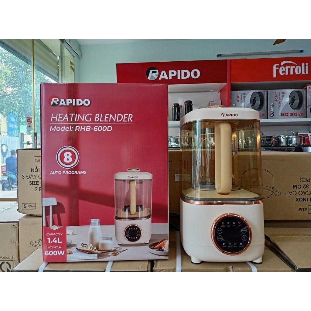 Thiết Bị Điện Gia Dụng > Máy xay, ép, máy đánh trứng trộn bột, máy xay thực phẩm > Máy xay-ép, đánh trứng trộn bột, máy xay thịt, xay thực phẩm > Máy làm sữa hạt 1.4L Rapido RHB-600D 500W xay nấu nhanh, cách âm hiệu quả, 8 chức năng nấu tự động