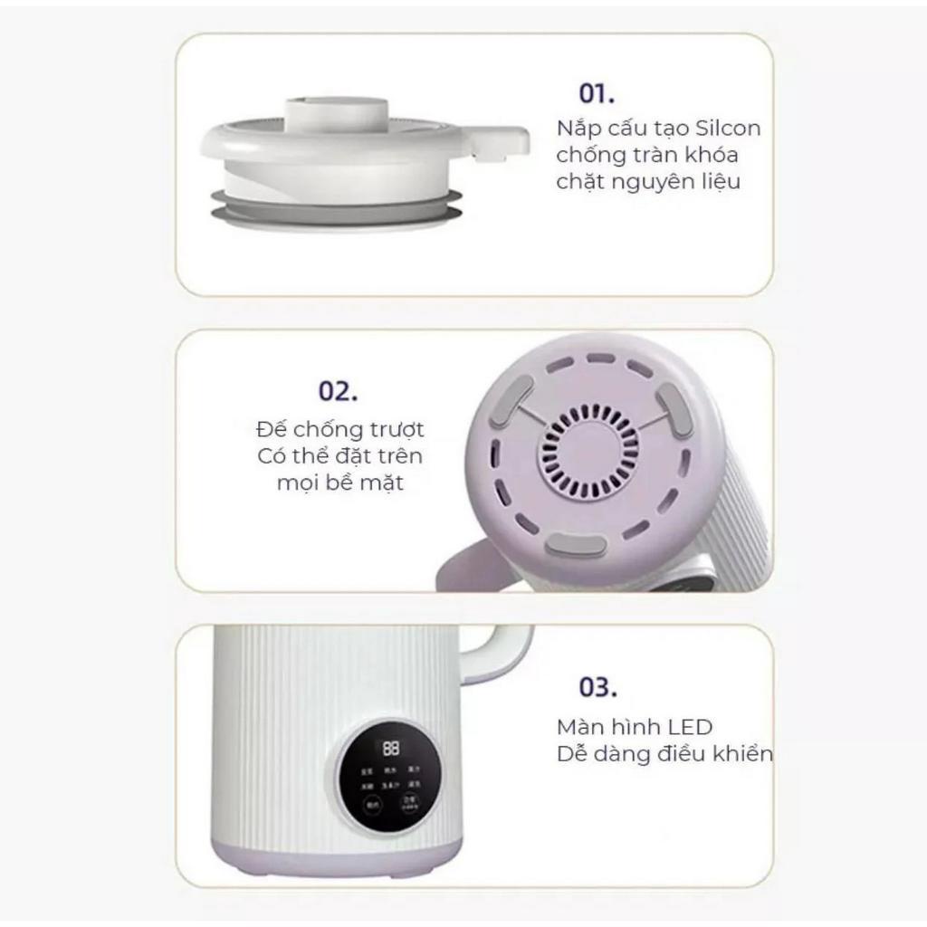 LƯU Ý TUYỆT ĐỐI KHÔNG CHO bảng điều khiển, toàn bộ thân máy tiếp xúc trực tiếp với nước dẫn tới máy không hoạt động hoặc hoạt động lỗi shop KHÔNG BẢO HÀNH những trước hợp trên , nếu lỡ tiếp xúc với nước nên để khô sau đó sử dụng bình thường Chi Tiết Sản Phẩm Máy làm sữa hạt mini Điện áp: 220V Công suất: 600W MÁY LÀM SỮA HẠT có công suất 500W, lưỡi dao được làm từ chất liệu inox 304 cứng chắc, sắc bén, xay nhuyễn nguyên liệu nhanh chóng. Thân bình dày 2 lớp với vỏ ngoài bằng nhựa tốt, ruột bình bằng inox 304 độ bền cao, an toàn cho sức khỏe, dễ rửa, vệ sinh. MÁY LÀM SỮA HẠT có 7 chế độ nấu tự động bao gồm nấu cháo, nấu nước, trà, sinh tố, làm sữa với các loại đậu, ngô (ngâm hoặc khô), ngũ cốc hoặc để dùng giữ ấm giúp món ăn gia đình đa dạng và phong phú hơn. MÁY LÀM SỮA HẠT có bộ điều khiển bằng các nút nhấn cảm ứng với chỉ dẫn, đèn tín hiệu tiện quan sát cho việc tùy chỉnh menu nấu tự động thêm dễ dàng và chính xác. Hỗ trợ an toàn với 6 chế độ bảo vệ gồm tự ngắt điện, ngưng hoạt động khi máy rỗng, ngưng hoạt động khi nhiệt độ quá cao, chống tràn, ngăn nước vào động cơ. Nhờ đó kéo dài tuổi thọ cho máy, sử dụng được lâu dài và an toàn cho khách hàng. ------------------------------------------------------ HƯỚNG DẪN SỬ DỤNG: - Gồm 8 chức năng cơ bản: Làm sữa đậu nành nhanh, Làm sữa đậu nành đặc, nấu cháo dinh dưỡng, Chức năng giữ ấm, Làm sữa ngô, làm nước trái cây, nấu nước sôi, làm sạch.