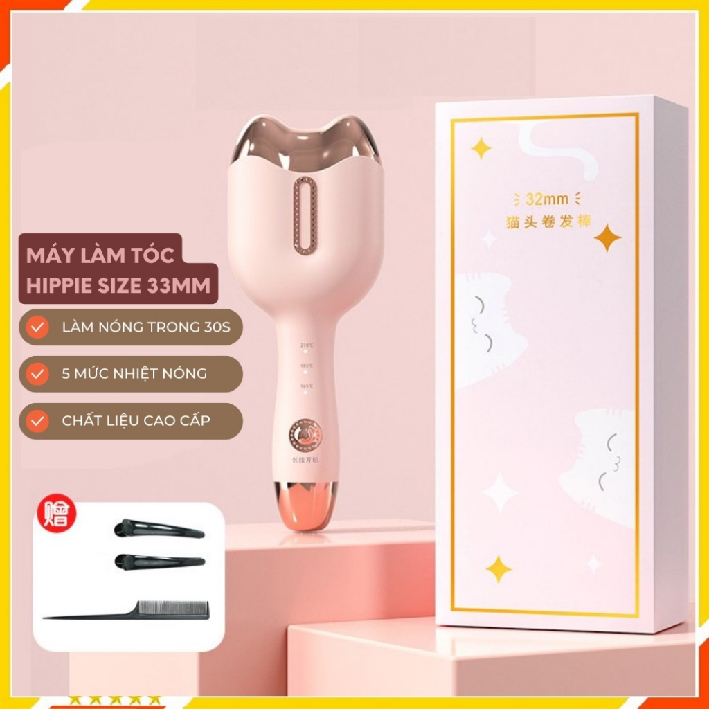 Giới thiệu Máy làm tóc - Máy uốn tóc xoăn sóng nước Hippie size 32m chất liệu gốm sứ bảo vệ tóc chống bỏng tay