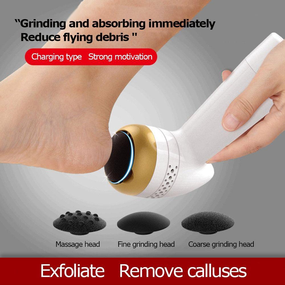 1 * cáp sạc USB Máy mài chân bằng điện Tệp tẩy da chết Tẩy vết chai Tẩy vết chai Chăm sóc chân Dụng cụ làm móng chân 3 đầu thay thế Đầu chà nhám mịn Đầu chà nhám nhám thô Đầu Massage Gold-Silver Portable