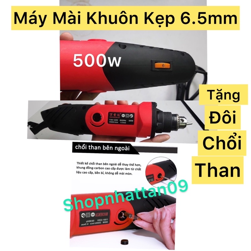 Dụng cụ và thiết bị tiện ích > Dụng cụ điện và thiết bị lớn > Cưa, máy cắt và máy mài > Máy mài khuôn 500W ĐẦU KẸP 6.5mm + tặng 1 đôi chổi than - máy khoan Thẳng