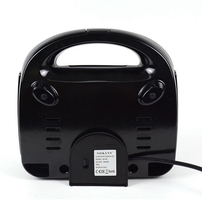 ⛵ Máy làm bánh SOKANY sẽ giúp bạn chuẩn bị một bữa ăn nhanh chóng tiện lợi mà vẫn đảm bảo dinh dưỡng và tốt cho sức khoẻ. Máy có công suất 750W, kiểu dáng hiện đại, sang trọng, tay cầm chắc chắn cùng hệ thống đèn báo điện nguồn và trạng thái sử dụng, luôn hoạt động chính xác, cho phép bạn theo dõi quá trình nướng bánh mà không phải mở nắp thiết bị. THÔNG SỐ KỸ THUẬT: + Thương hiệu: SOKANY + Công suất: 750W + Kích thước: 22x22,5x10,5cm + Màu sắc: Đen ốp inox + Nguồn điện: 220V/50Hz + Sản phẩm bao gồm: 1 máy nướng, 6 bộ khuôn như ảnh, sách hướng dẫn sử dụng - Kẹp nướng bánh Sokany với thiết kế nướng 6 trong 1, với 6 bộ vỉ nướng đi kèm bạn có thể làm các loại bánh khác nhau như bánh sandwich, bánh waffle, bánh quy, bánh trứng,... hay nướng thức ăn trực tiếp ngay trên vỉ. - Bạn có thể kẹp sandwich với bơ, pate, thịt, trứng, mứt quả... và bỏ vào máy. Sau 2 - 3 phút, phần vỏ bánh sẽ được nướng giòn, phần nhân bên trong vừa chín tới tạo vị thơm ngon, hấp dẫn tạo thành chiếc bánh sandwich hấp dẫn, thơm ngon. - Máy làm bánh sandwich Sokany có thiết kế bên trong là lớp khuôn được tráng lớp chống dính, vì thế bánh không bị cháy đen và giúp việc vệ sinh đơn giản hơn. Lưu ý khi lấy bánh ra khỏi máy, bạn không được sử dụng vật bằng kim loại để bảo vệ lớp chống dính này. - Ngoài ra, vỏ được thiết kế chịu nhiệt bền, tay cầm cách nhiệt hoàn toàn, đảm bảo an toàn cho bạn khi sử dụng. - Máy nướng bánh 6 trong 1 trang bị đèn báo hiệu thông minh khi chín để bạn tắt máy ⛵