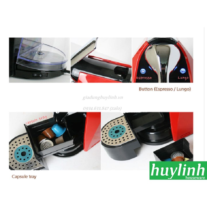 Máy pha cà phê viên nén Carraro Z0101 với khả năng pha cà phê nhanh chóng tiện lợi với chỉ 1 viên nén và 1 nút bấm, không cần mất quá nhiều thời gian. Huy Linh tặng kèm 2 hộp cà phê viên nén Carraro bất kì. - Với Máy pha cà phê viên nén Carraro Z0101 thay vì phải tốn thời gian vào việc pha chế phức tạp, bạn chỉ việc bỏ 1 viên cà phê viên nén vào máy, nhấn nút và đợi thưởng thức cafe espresso thơm ngon. - Máy pha cà phê Capsule Carraro CN-Z0101 hoàn hảo cho cá nhân, gia đình hoặc văn phòng nhỏ,... với thiết kế hiện đại và kích cỡ rất nhỏ gọn. Nếu bạn yêu thích cà phê ít sữa hoặc không sữa thì đây lựa chọn không thể thay thế được, máy hầu như tương thích với tất cả các Nespresso và các viên nén (capsule) đang có mặt trên thị trường hiện nay. Đặc điểm của máy - Thiết kế hiện đại: máy sử dụng nút chạm tinh tế khi lấy cà phê. - Máy có bơm với áp suất cao lên đến 20Bar, đây là một áp suất lý tưởng để chiết suất ra espresso đậm đà, béo ngậy. - Nhanh chóng và liên tục: Máy làm nóng tức thì và nhanh chóng từ ly cà phê đầu tiên. - Chức năng tiết kiệm năng lượng tự động: máy sẽ tự động tắt sau khi sử dụng. - Các viên nén rất dễ dàng được lắp vào máy, và sẽ tự động đưa ra ngoài các viên nén đã dử dụng rồi. - Hộp đựng nước của máy có thể tích khoảng 1l, và rất dễ tháo lắp khi cần thiết. - Có các chương trình khả dụng và tự động để điều chỉnh lượng cà phê được pha ra theo kích cỡ của tách. Thông số kỹ thuật máy pha cà phê viên nén Carraro Z0101 - Kích thước (WxHxD): 16.2 x 26 x 30.5 cm - Chất liệu: Nhựa ABS, Thép không rỉ - Màu: Trắng/ Đen/ Đỏ - Ngăn chứa nước: 1 L - Kiểu viên nén: Nespresso - Điện áp/ Công Suất: 220-240V/ 1250-1450W - Áp suất bơm: 19 bar - Tự động đẩy capsule đã dùng ra hộc đựng - Tiết kiệm năng lượng với tính năng tự động ngắt - Tương thích với kích thước của viên nén Nespresso - Thương hiệu Ý, xuất xứ: Trung Quốc - Bảo hành 12 tháng #mayphacaphe #mayphacaphecapsule #mayphacapheviennen #carraro #huylinh #giadunghuylinh.vn