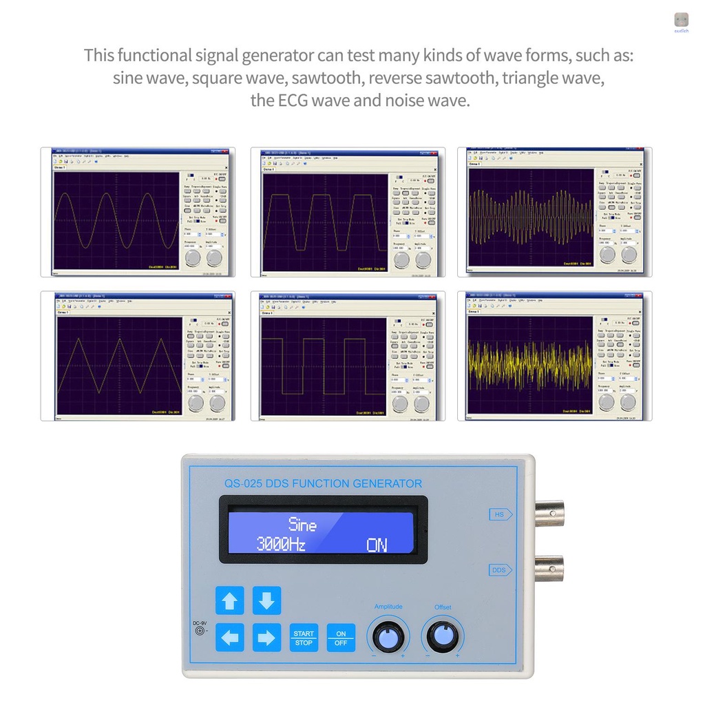 Tín hiệu DDS rộng --- sóng sin, sóng vuông, răng cưa, răng cưa ngược, sóng tam giác, sóng ECG và sóng nhiễu.