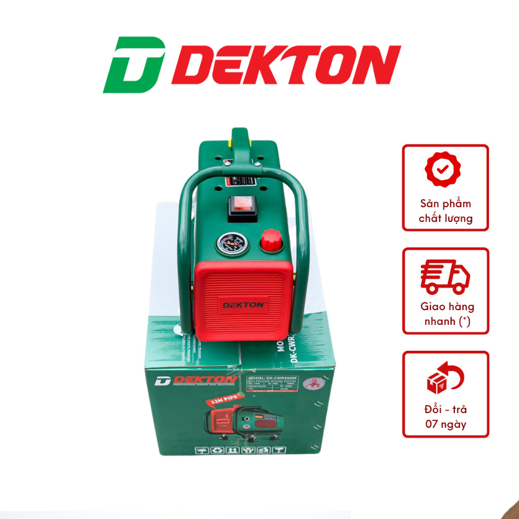 Dụng cụ và thiết bị tiện ích > Dụng cụ điện và thiết bị lớn > Máy rửa áp lực nước > Máy Rửa Xe Dekton DK-CWR3000F - Công Suất 3000W - Chỉnh Áp - Bánh Xe Đẩy