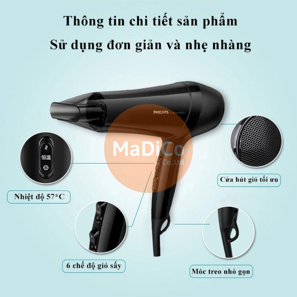 Giới thiệu Máy sấy tóc Philips 2 chiều nóng lạnh BHC020 công suất lớn 1800W tạo kiểu tóc chuyên nghiệp chuẩn salon - BH 2 năm