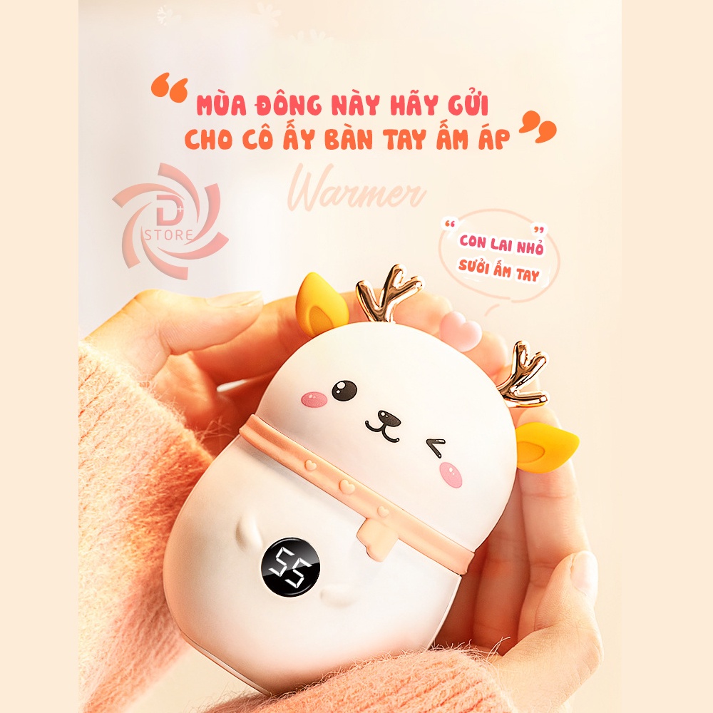 Giới thiệu Máy sưởi ấm mini cầm tay kiêm sạc dự phòng đa năng 10000Mah Hươu cute (hiển thị led)