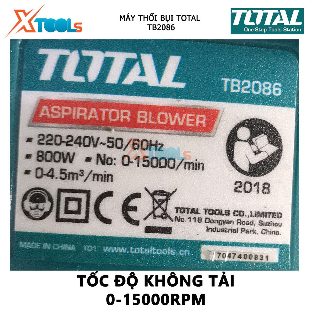 Dụng cụ và thiết bị tiện ích > Dụng cụ điện và thiết bị lớn > Máy thổi > Máy thổi bụi TOTAL TB2086 | máy thổi lá công suất 800W tốc độ không tải 0-15000rpm lượng thổi tối đa 0-4.5m³/phút