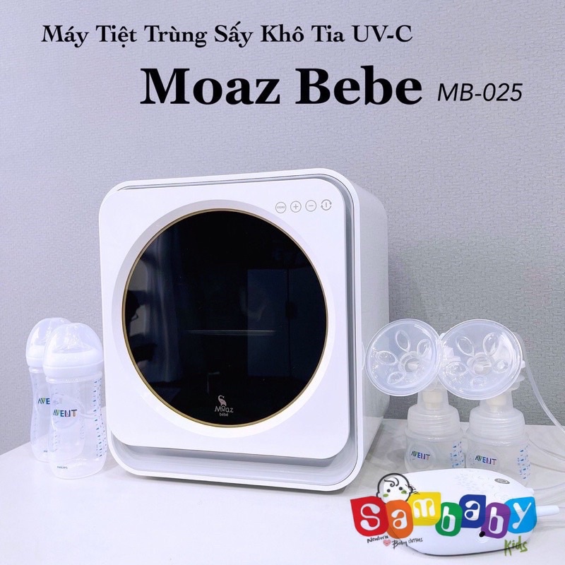"MÁY TIỆT TRÙNG SẤY KHÔ TIA UV-C MOAZ BÉBÉ MB-025 (Giá lẻ 3800k Chức năng + Tự động tiệt trùng và sấy khô, tiệt trùng độc lập, sấy khô độc lập, sấy hoa quả, làm sữa chua, bảo quản. + Tự động sáng đèn khi mở cửa. + Đèn LED UV-C công nghệ xoay 360 độ giúp khử trùng triệt để và toàn diện. + Thiết kế màn hình cảm ứng, cửa sổ có thể nhìn xuyên thấu bên trong. + Bộ lọc than hoạt tính giúp tiệt trùng hiệu quả cao Thông số kỹ thuật: + Công suất định mức: 150W, Công suất đèn UV-C: 5W, Dung tích 18 lít + Điện áp: 220V-50Hz, trọng lượng sản phẩm: 4,35kg. + Chất liệu: Thép không gỉ 304, nhựa ABS. kích thước: 30,5*32,5*35,5cm + Bảo hành vàng 18 tháng lỗi 1 đổi 1 trong 1 tháng