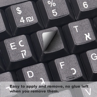 Bộ 2 Miếng Dán Nút Bàn Phím Hebrew Trắng Đen Chống Thấm Nước Siêu Bền