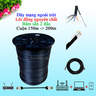 [150->200m] Dây mạng 4 lõi đồng nguyên chất 100% kèm cáp chịu lực chắc chắn có bọc bạc, dầu chống ẩm bấm sẵn 2 đầu
