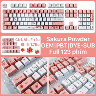 Keycap Sakura Powder Profile OEM nhựa PBT cao cấp in Dye-Sub sắc nét Full 123 phím
