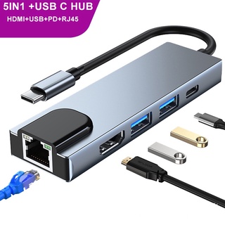 Bộ Chia 5 Cổng USB Type C Sang HDMI 4K RJ45 USB3.0 PD 5 Trong 1 Cho Laptop Notebook