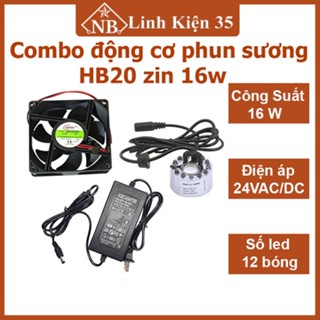 Combo 01 động cơ phun sương HB20 (hàng Zin 16W) có đèn, nguồn 24V-2A (tặng kèm 01 quạt tản nhiệt 8x8x2,5cm 24V )