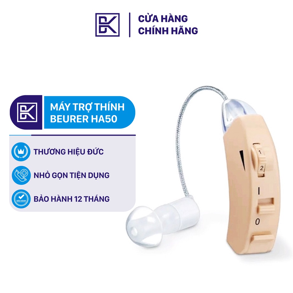 - Máy trợ thính Beurer HA50 là thiết bị giúp người dùng có thể nghe tốt hơn bằng cách khuếch đại âm thanh và sau đó truyền tới tai người dùng. Thiết bị này không thể ngăn cản, cũng không thể làm giảm các nguyên nhân gây mất thính lực. - Thiết bị cho phép bạn sử dụng với nhiều ứng dụng khác nhau. Bất kể bạn muốn xem phim, nói chuyện với bạn bè hay chỉ thích nghe các âm thanh tự nhiên trong rừng, thiết bị này cũng có thể giúp bạn nghe được âm thanh to và rõ hơn. - Thiết bị khuếch đại âm thanh là một thiết bị điện tử có khả năng xử lý và khuếch đại âm thanh, nhằm trợ giúp cho những người gặp khó khăn khi nghe, khi giao tiếp. - Âm thanh được micro thu vào và được chuyển đổi thành tín hiệu điện tử để xử lý. Lúc này, thiết bị sẽ khuếch đại và thay đổ theo cường độ của âm thanh theo nhu cầu nghe của riêng mỗi người. Tín hiệu đã được khuếch đại sẽ được chuyển đổi lại thành âm thanh và đưa vào tai qua loa.