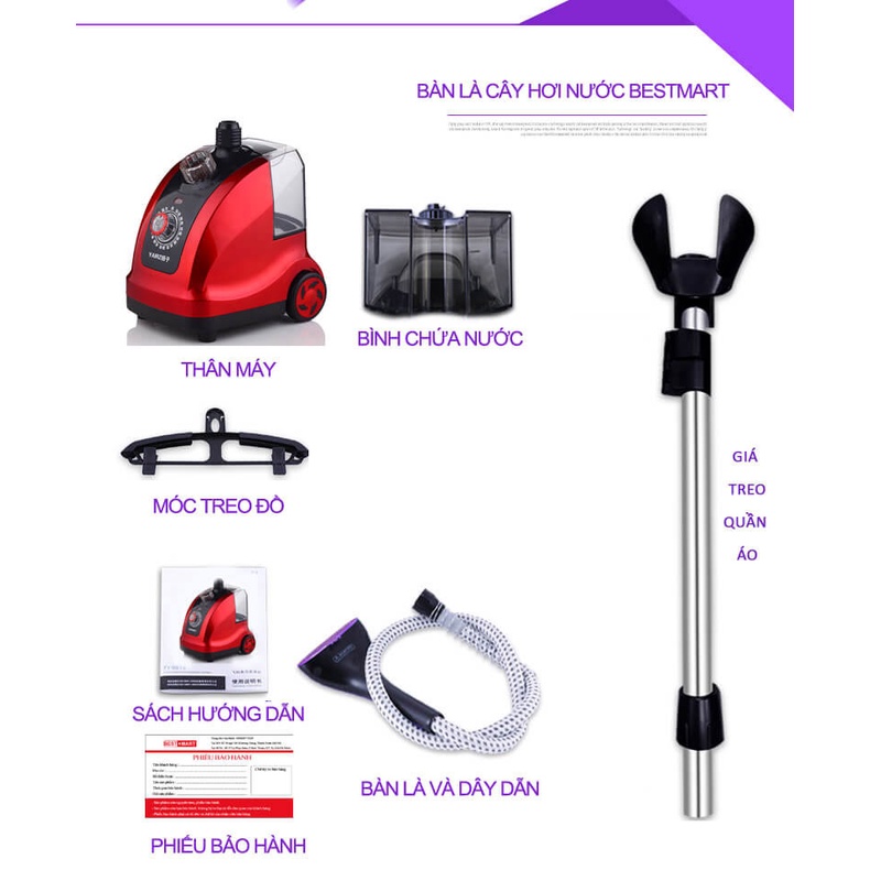 Bàn ủi điện hơi nước dọc Công suất: 1800W Dung tích bình chứa nước: 1800ml Tốc độ hơi: 38 g / phút. Siêu mạnh, làm phẳng quần áo của bạn trong vòng chưa đầy 1 phút Tốc độ nguyên tử hóa: 38 giây Chất liệu: vỏ nhựa ABS cao cấp, ván sắt thép không gỉ Chất liệu: nhựa cao cấp Điện áp: 220V-240V Tần số: 50 / 60Hz
