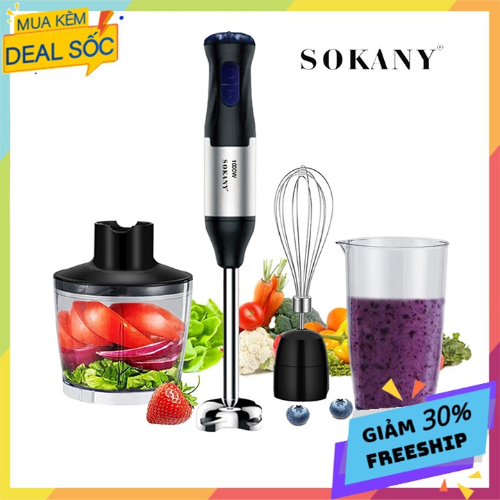 ⛵ GIẢI PHÁP TUYỆT VỜI CHO CÁC MẸ CÓ CON TRONG ĐỘ TUỔI ĂN DẶM - TẬP ĂN DẶM. - Máy xay đa chức năng, xay sinh tố, cháo nóng, đánh trứng, kem, thịt,... - Lưỡi dao sắc bén, thiết kế thông minh với đầu xay chống văng. - Công suất 1000 W mạnh mẽ, dễ dàng xay mịn mọi loại thực phẩm. - Thanh máy xay có thể tháo rời, tiện cho việc lau vệ sinh. - Tay cầm chống trượt tiện dụng cho sự thoải mái và an toàn tối đa - Máy xay với nhiều tốc độ. THÔNG SỐ SẢN PHẨM + Thương hiệu: SOKANY + Chất liệu: Thép Không gỉ + Nhựa + Tốc độ: Tùy Chỉnh 5 Tốc Độ + Màu Sắc chủ đạo: Màu Đen – Bạc + Điện áp: 220-240V, 50/60Hz + Công suất: 1000W + Phích cắm: 2 chân Bộ sản phẩm Bao Gồm: 1 x Máy Xay 1 x Bộ Cối Xay Thịt 1 x Bộ Cối Xay Cháo 1 x Cây Đánh Trứng 1 x Sách Hướng Dẫn Sử Dụng ⛵