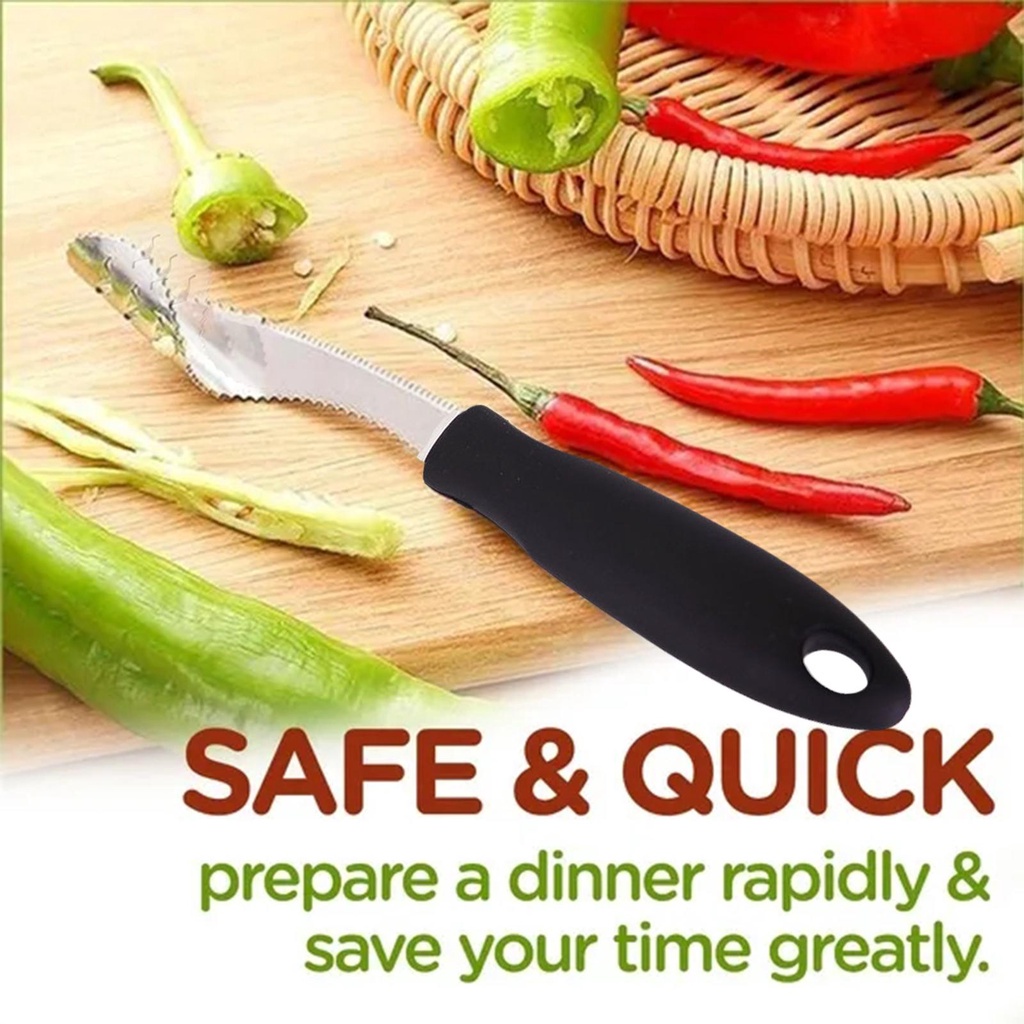 Tên: Sốt ớt bằng thép không gỉ Chất liệu: thép không gỉ 430 + cao su và nhựa Khối lượng tịnh: 47g Kích thước: 20 × 2,8 × 2cm / 7,87 * 1,10 * 0,79 inch Độ dày: 1,0mm Sử dụng sản phẩm: Nhanh chóng lấy hạt trong ớt