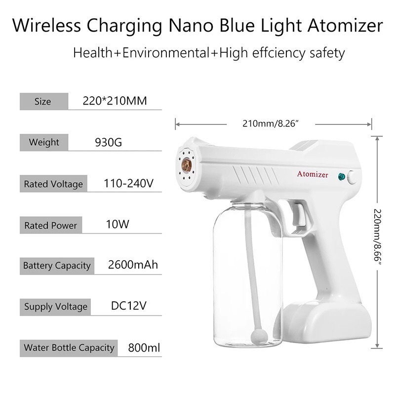 2 、 Máy phun sương tốt: Dụng cụ điện Nano không dây chạy bằng pin lithium 2600MAH, có thể sạc lại 2H, thời gian làm việc liên tục lên đến 3H! An toàn và tiện lợi! Điện áp phổ thông 110V-240V.