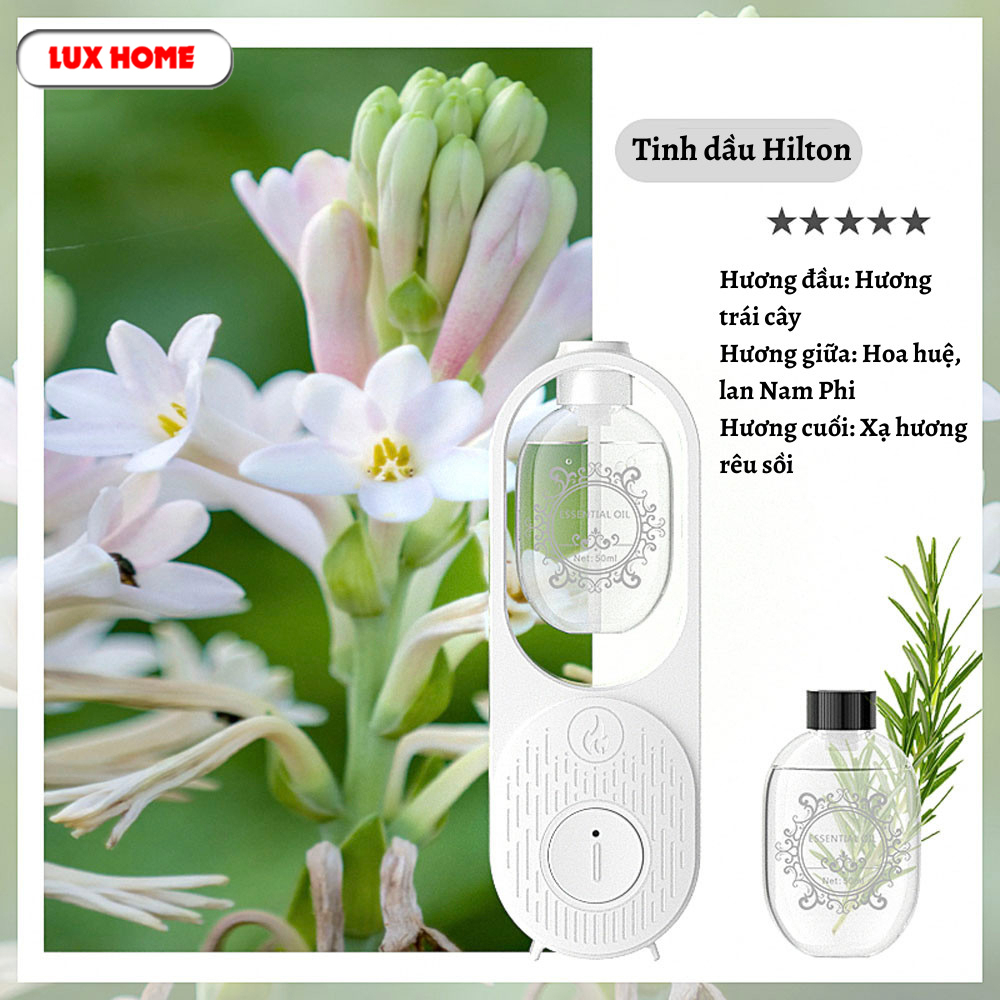 Máy xịt thơm phòng tự động, máy xông tinh dầu phòng ngủ với pin sạc 500mAh kèm tinh dầu nước hoa 50ml