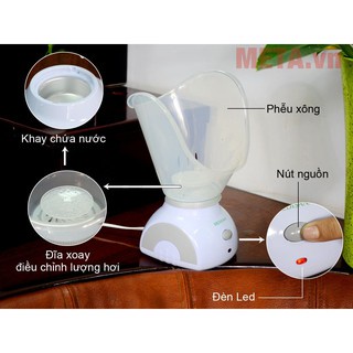Máy xông hơi mặt Medisana FSS chuyên dùng để thẩm mỹ trên mặt và là một phần của thiết bị cơ bản trong chăm sóc sắc đẹp. Máy xông hơi da mặt Medisana là dòng máy chăm sóc da tại nhà, giúp bạn tiết kiệm thời gian hơn khi chăm sóc da. Dùng để xông hơi mặt làm cho các lỗ chân lông được mở ra, các tế bào da có thể thư giãn dưới cái nóng ẩm đồng thời độc tố trong cơ thể và trên da mặt cũng được bài tiết ra ngoài. Có thể kết hợp với hương liệu thiên nhiên hoặc dược phẩm tạo tác động kép giúp cho việc hấp thụ tốt nhất các sản phẩm chăm sóc da, cải thiện tốt nhất cho làn da. Xông hơi kết hợp với Massage và sử dụng các sản phẩm chăm sóc da (thảo mộc và dược phẩm) làm mềm da, tăng tính đàn hồi và làm trẻ hóa da. Có thể xông hơi để làm sạch mũi họng. Máy xông hơi mặt mini hoạt động với công suất 120W sẽ giúp tăng cường tuần hoàn da, làm giãn nở các lỗ chân lông để các chất bẩn được làm sạch một cách dễ dàng, các sản phẩm chăm sóc da cũng ngấm sâu hơn vào da thông qua các lỗ chân lông mở, nhờ thế phát huy tối đa tác dụng dưỡng da, da mặt bạn sẽ được chuẩn bị một cách tốt nhất để tiếp nhận các phương pháp chăm sóc da như làm sạch sâu, giữ ẩm, đắp mặt nạ...
