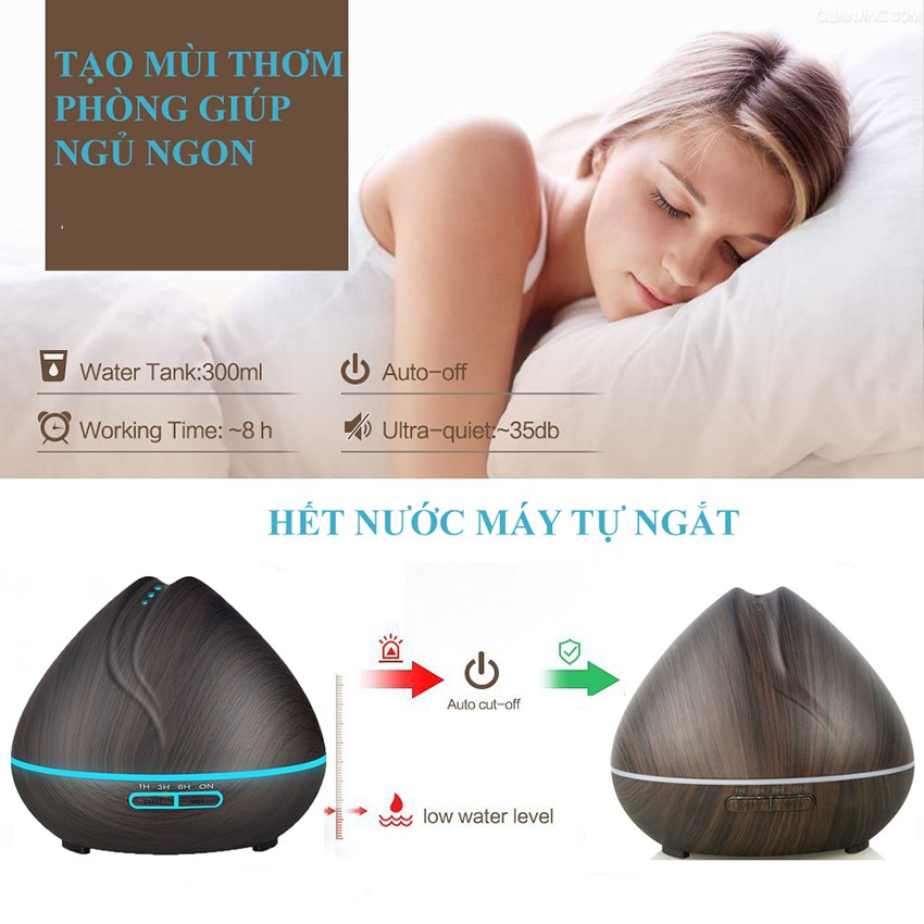 Máy Phun Sương/Máy Khuếch Tán Tinh Dầu/Máy Xông Tinh Dầu Búp Se Tặng Tinh Dầu Cao Cấp Và Điều Khiển Bù Ẩm