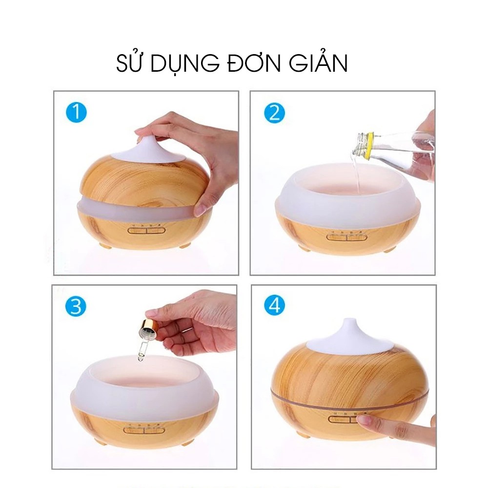 - Chất liệu: nhựa cao cấp. - Màu sắc máy: có màu vân gỗ sáng và tối. - Kích thước: 170 x 145 mm. - Trọng lượng: 400 gr. - Dung tích bình chứa: 500 ml. - Khả năng khuếch tán: 30m2. - Thời gian hoạt động: 12-14h. - Điện áp đầu vào: 100-240V. - Điện áp đầu ra: 24V. - Tần số: 50/60Hz. - Công suất: 10W. - Tần số siêu âm: 2,4 MHz. - Sương mù đầu ra: 25-60ml/h. - Chế độ tự động tắt máy: có. - Chế độ hẹn giờ: 1H/3H/6H/ON. -------------------------------