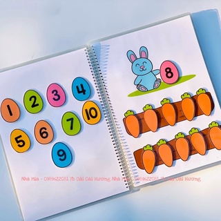 Học liệu bóc dán Montessori đầu đời cho bé, Busy book chủ đề tông hợp 15 trang in giấy bìa ép Plastic siêu bền