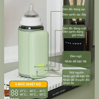 Máy hâm sữa di động tích điện không dây làm ấm nhanh, có đèn báo ban đêm (Không kèm adapter) - Bảo hành 6 tháng