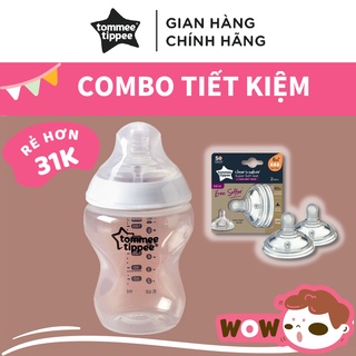 COMBO Bình sữa ty siêu mềm tự nhiên Tommee Tippee Closer to Nature 260ml & Núm ty silicon thay thế 6M+