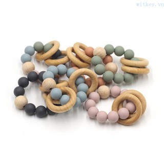 Đồ Chơi Vòng Tay Ngậm Mọc Răng Bằng Silicone Và Gỗ Sồi Dành Cho Trẻ Em