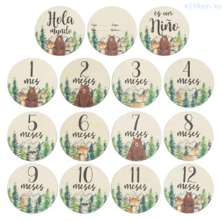 Bộ Thẻ Đánh Dấu Cột Mốc Phát Triển Theo Tháng Cho Bé Hình Tròn In Họa Tiết Chiếc Lá