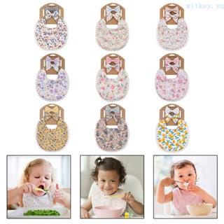 Set 3 Yếm Ăn Bằng Vải Cotton Viền Hoa Dành Cho Bé 0-24 Tháng Tuổi