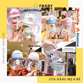 ( Bình 280ml/350ml) Bình Uống Nước Cho Bé Có Van Chống sặc, Không Rò Rỉ Nước Hình Heo/Hươu Có Quai Đeo Cực Tiện Lợi