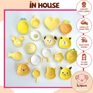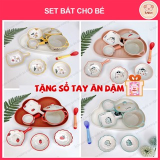 [tặng sổ tay] Combo bát sứ ăn dặm cho bé kèm khay mây tặng thìa báo nóng, chén ăn dặm set nhiều hình xinh- Ỉn House