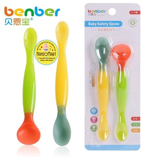 Thìa ăn dặm đầu mềm silicon báo nóng Benber
