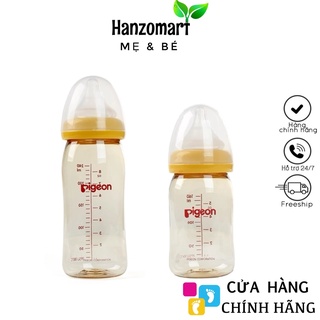 Bình sữa Pigeon 160ml / 240ml cổ rộng PPSU Plus với núm vú silicone siêu mềm Plus