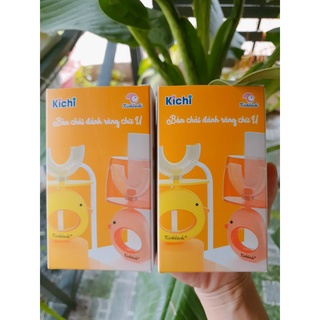 Bàn chải chữ U Kichilachi silicon siêu mềm có nắp đậy hình gà con cho bé