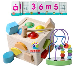 (Tặng Thẻ Học) Combo Đồ Chơi Gỗ Hộp Thả Hình Khối Kèm Trò Chơi Đập Bóng Giúp Bé Rèn Luyện Phản Xạ, Kỹ Năng Vận Động