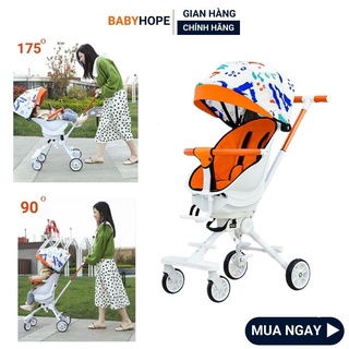 Xe đẩy gấp gọn 2 chiều 3 tư thế cao cấp BABYHOPE có thể ngả được 175 độ có mái che, đệm , lót