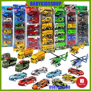 Đồ chơi bộ hộp sét 6 món ô tô máy bay chạy cót xin xò cho bé