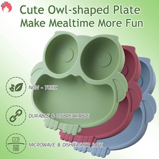 Đĩa Ăn Chia Ngăn Bằng Silicon Hình Cú Mèo Dễ Thương Cho Bé